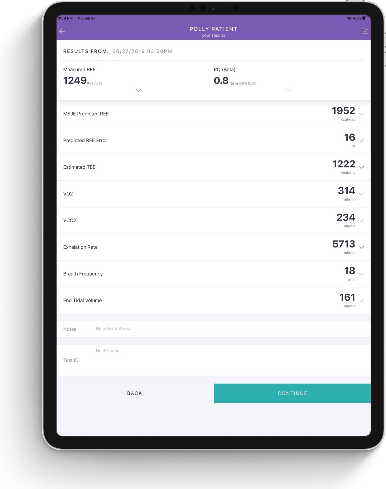 Προϊόν της τελευταίας λέξης της τεχνολογίας, αυτή η μοναδική φορητή συσκευή θα σας δώσει λεπτομερή και αξιόπιστα στοιχεία μετρήσεων REE/RMR και RQ σε απόλυτα προσιτή τιμή, κάτι που θα σας επιτρέψει και τη συχνή παρακολούθηση του μεταβολισμού!